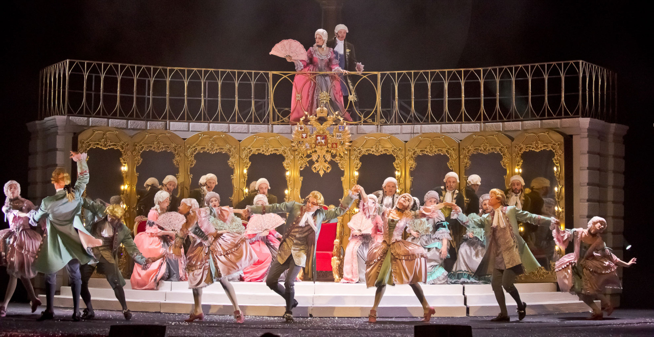 Действие мюзикла «Екатерина Великая» разворачивается в XVIII веке и охватывает весь период жизни Императрицы в России: от приезда юной Фике до её смерти в Санкт-Петербурге в 1796 г.