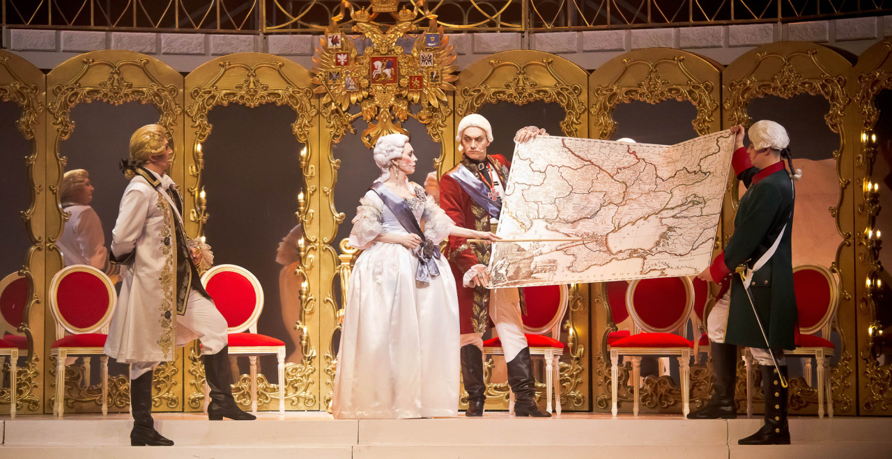 Автор либретто, Александр Анно, дал спектаклю подзаголовок «Музыкальные хроники времен Империи». Драматургия его основана на подлинных исторических фактах из жизни Екатерины II, искусно дополненных блистательными стихотворными текстами музыкальных номеров и эффектными диалогами героев.